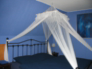 The bedroom on the top floor has a double bed, closet and - inspite of