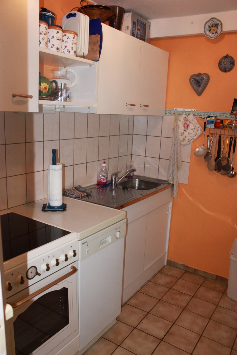 Eine kleine, aber komplett eingerichtete Küche mit Ceranherd/Backofen, Spüle, Geschirrspülmaschine, Kühlschrank, Microwelle, Kaffeemaschine, Wasserkocher, Toaster und Geschirr finden Sie direkt neben dem Eßzimmerbereich. |