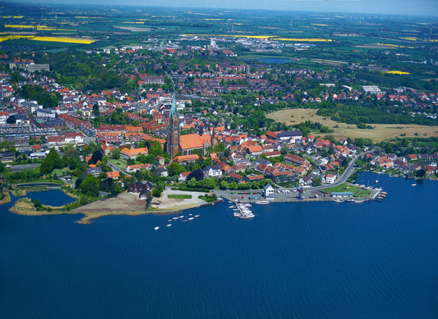Schleswig ist heute eine moderne Kulturstadt, mit Museen wie das Schloß Gottorf, Kunstausstellungen und eine wunderschöne Altstadt rund um den Schleswiger Dom. Auch die Schlei und die Fußgängerzone laden zum Spazieren ein und für den kulinarischen Genuß gibt es viele gemütliche Kneipen und Restaurants. Der Wiking-Turm an der Schlei ist fast 100m hoch und beschert schöne Ausblicke auf die Stadt und das Umland. |